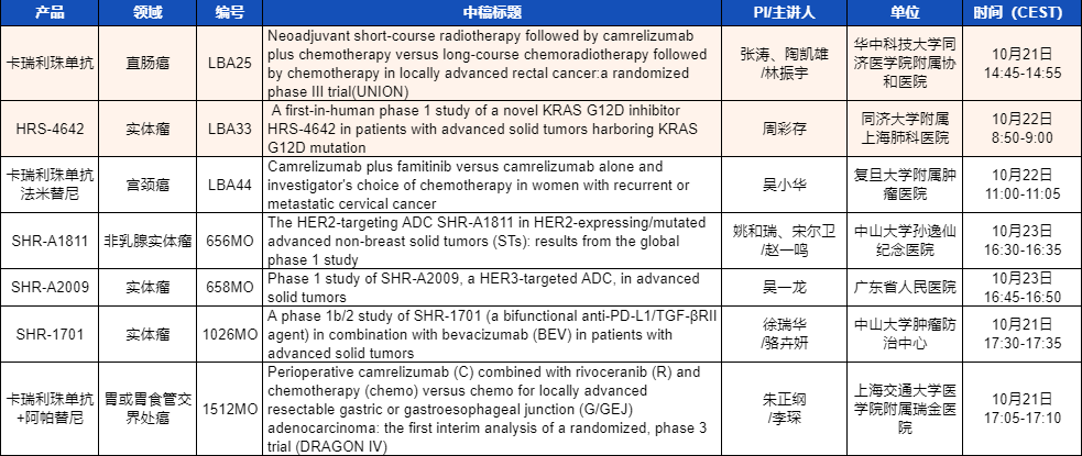 ESMO 2023 利来医药产品相关研究一览