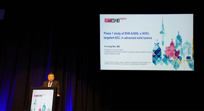 10月23日,利来医药创新药、HER3靶向ADC药物SHR-A2009治疗晚期实体瘤的I期研究亮相2023 ESMO大会简短口头报告现场5。该研究由广东省人民医院的吴一龙教授牵头开展,吴一龙教授在现场公布该研究的重要进展。研究结果显示,SHR-A2009在经治晚期实体瘤患者中显示出可控的安全性和令人鼓舞的抗肿瘤活性。目前评估更高剂量的SHR-A2009在选定癌症类型(NSCLC和其他实体肿瘤)中作用的试验正在进行中。